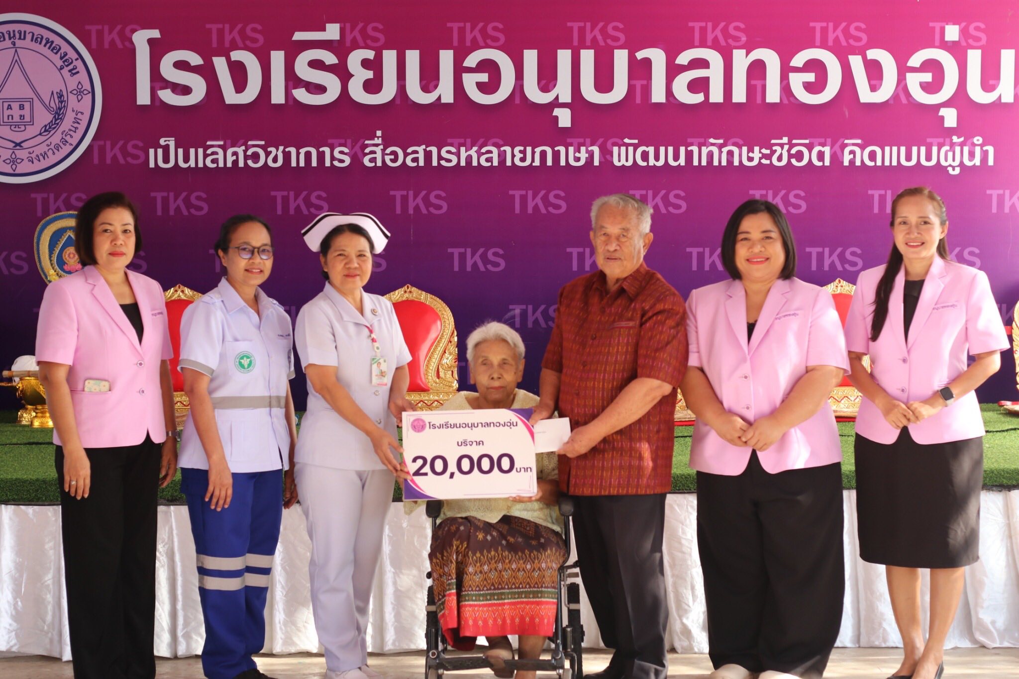 โรงเรียนอนุบาลทองอุ่น จัดกิจกรรมทำบุญตักบาตรข้าวสารอาหารแห้ง และมอบเงินบริจาคให้กับทางโรงพยาบาลท่าตูม เนื่องในวันสถาปนาโรงเรียนครบรอบ 25 ปี และเนื่องในโอกาสวันคล้ายวันเกิด อายุ 87 ปี คุณยายทองอุ่น บุญมี