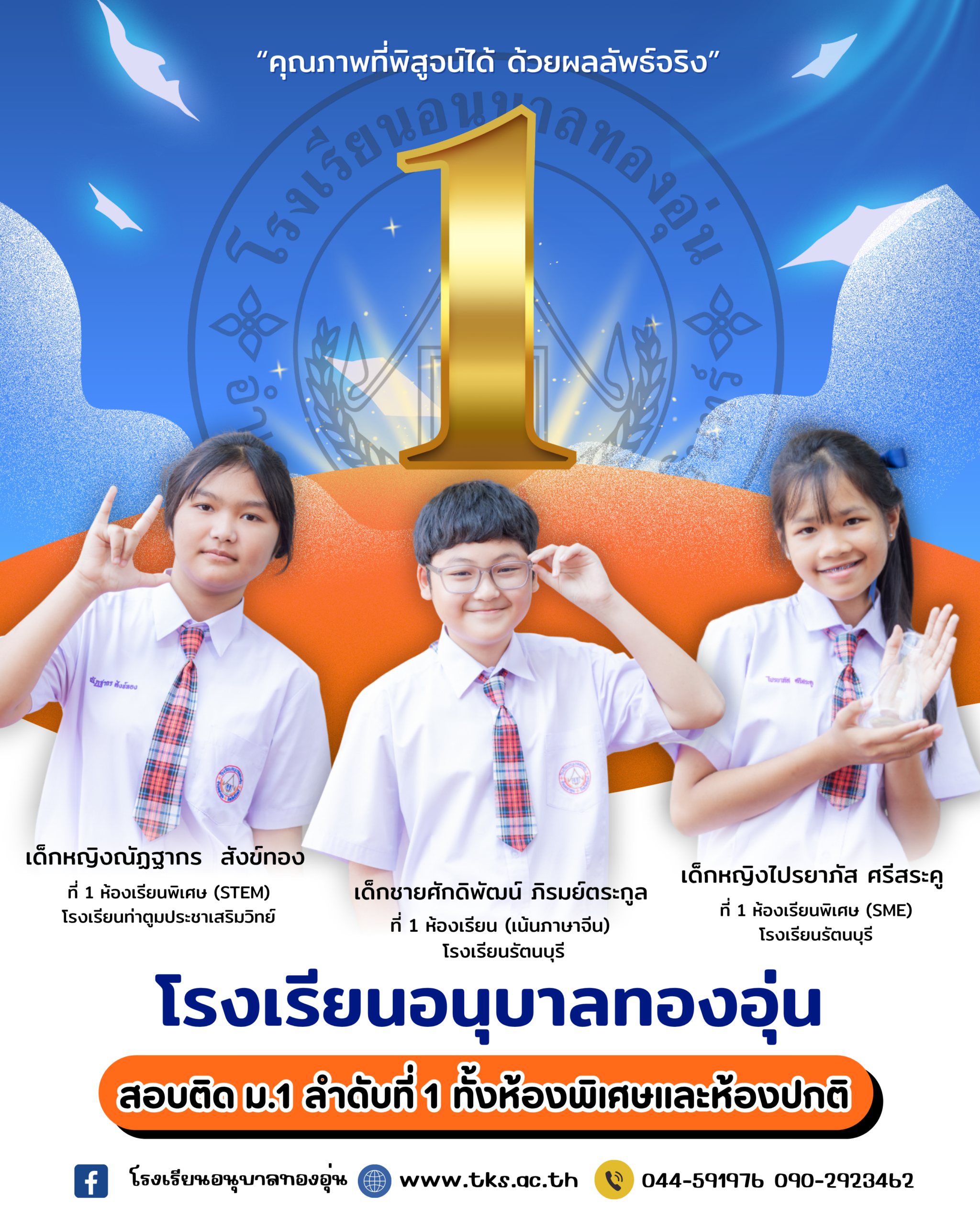 ความสำเร็จนี้ ไม่ใช่แค่คะแนนสอบ แต่คือ “คุณภาพการเรียนรู้” และ “ความตั้งใจของนักเรียน” โรงเรียนอนุบาลทองอุ่น สอบเข้า ม.1 ได้ลำดับที่ 1 หลักสูตรพิเศษ และหลักสูตรสามัญ